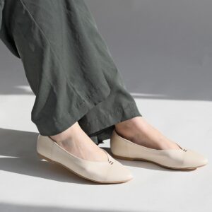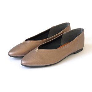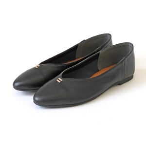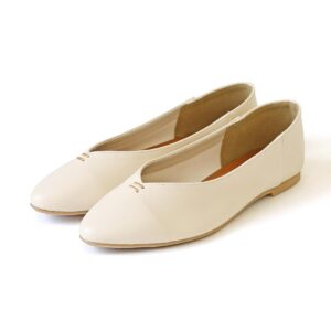 足元をすっきり見せるVカットフラットパンプス。